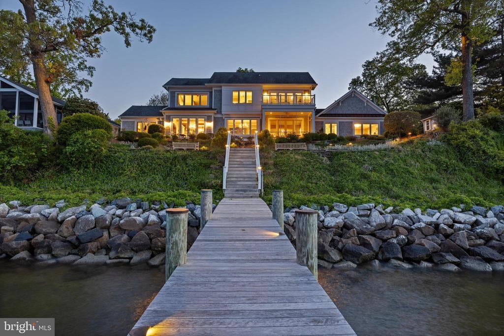 Commanding panoramic views of the Chesapeake Bay, Bay Bridge, and Eastern Shore, this exceptional waterfront residence offers an unparalleled waterfront lifestyle. The regions finest team was assembled including Purple Cherry Architects and Gate One Builders to create a custom masterpiece of style, design and tranquility. Outside, a private 120’ IPE pier with two Hi-Tide boat lifts—including a 16K heavy-duty lift and a 6K lift for kayaks and jet skis—makes this a boater’s dream. Peaceful waterfront living is elevated with a screened IPE porch featuring breathtaking views of sunrises, sailboat races, and the Blue Angels. Inside, the chef’s kitchen is outfitted with a 55” Lacanche range, dual Bosch dishwashers, leathered marble countertops, Miele appliances, and a walk-in pantry. Reclaimed 150-year-old beams, an award-winning iron and bronze staircase by Maynard Studios and custom built-ins throughout the home reflect true craftsmanship. A main level secondary Primary suite with water views provides flexibility and convenience. Upstairs, the expansive primary suite offers serene bay views, a spa-style bath, dual closets, private library and balcony. Enjoy a glass of wine at the end of the day from the temperature controlled wine cellar in the lower level. An upstairs studio with a bay-facing balcony offers flexible living or guest space. Timeless, thoughtfully designed, and meticulously maintained—2512 Lyon Drive is Chesapeake Bay living at its finest. Welcome Home!