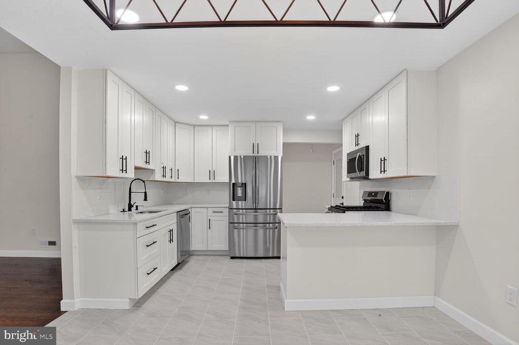 All New Home Inside and Outside in Linthicum Heights: Features include New Architectural Roof, New HVAC, New Vinyl Siding, New Windows, New Exterior and Interior Doors, New Hardwood Flooring, New Stainless Appliances, New Kitchen with sparkly Quartz countertops and Breakfast Bar, New Sink, Custom White Cabinets with soft-close cabinets and drawers, new gas stove with grill attachment and Bake, Air Fry, Bread Proofing, Dehydrate, Keep Warm, Broil, and Self Clean features, New Refrigerator with cubed, crushed ice, water features in door, New ceramic Kitchen & Dining Area Flooring; New Baths, one with Marble Tiled Floor and tub, LED no fog, lighted 3-color mirror, Ceilings with recessed lights, new fixtures and outlets throughout, Lighted Closets, keyed bedroom door locks, new paint, New Deck, updated electrical and plumbing, new insulated and remote control garage. Large closets and lots of storage. Enjoy the Custom-Quality materials and workmanship throughout this beautiful home. Everything is New!