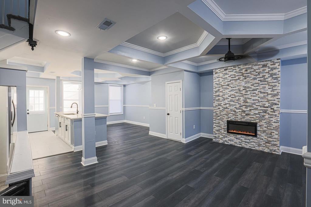 Immaculately renovated, move-in ready, 3-bedroom/3.5-bathroom townhome tucked away in northwest Baltimore. Open floor plan features tray ceilings, recessed lighting, mantled fireplace, shining LVP floors, quartz countertops, large island, breakfast bar, new cabinets, and sparkling stainless-steel appliances. Modern lighting and freshly painted gray tones perfectly accent the space. Finished lower level featuring a gorgeous full bathroom, wet bar, hidden storage, separate laundry zone w/ hook-ups, and abundant space provides the perfect living area, recreation room, entertainment space, and/or home office. Upper level boasts a large owner’s suite with a beautifully tiled full bathroom that contains a new vanity, bright lighting, and walk-in shower. Two more generously sized bedrooms, one with a HUGE walk-in closet and dressing area, and an elegantly designed additional bathroom with an adjacent linen closet complete the top floor. Exterior includes a vast covered front porch, and an immense fenced-in backyard highlighted by a new parking pad for off street parking. New electrical, plumbing, and HVAC systems provide the ultimate peace of mind. Proximity to I95, 695, 83, Towson Town Center, Hunt Valley, Foundry Row, downtown Baltimore, Sinai Hospital, Forest Park Golf Course, the Maryland Zoo, Baltimore Peninsula, CFG Bank Arena, Druid Hill Park, and so much more. Schedule a showing today!