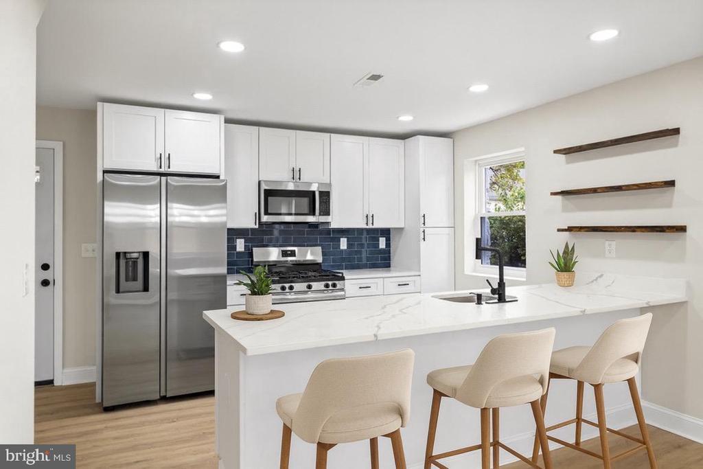 Welcome home to 5514 Liberty Heights Avenue! This newly updated 4 bedroom, 2 bath single-family home offers the perfect blend of modern upgrades and charm. The interior boasts a bright and inviting living room with large windows, a modern ceiling fan and a cozy fireplace. The open dining area flows seamlessly into the kitchen, perfect for entertaining. The newly renovated modern kitchen offers top-tier features like white shaker cabinets, quartz counters, tile backsplash, a spacious breakfast bar island, and new stainless-steel appliances. Upstairs find 4 bedrooms and a full bathroom offering modern and luxurious finishes, new tub and tile surround, and an upgraded double vanity. The fully finished lower level is perfect for a family room, guest space or home gym, and offers a full bathroom. Out back, you’ll find a nice sized yard perfect for hosting cookouts or enjoying a quiet evening on the covered porch. Paved driveway located at rear exterior of the home. Located near local gems like Forest Park Golf Course, Gwynn Falls Trail, and Druid Hill Park. Enjoy shopping and dining in nearby Woodlawn and Catonsville, all just a short drive from downtown Baltimore. Convenient to commuter routes I-70 and I-695.